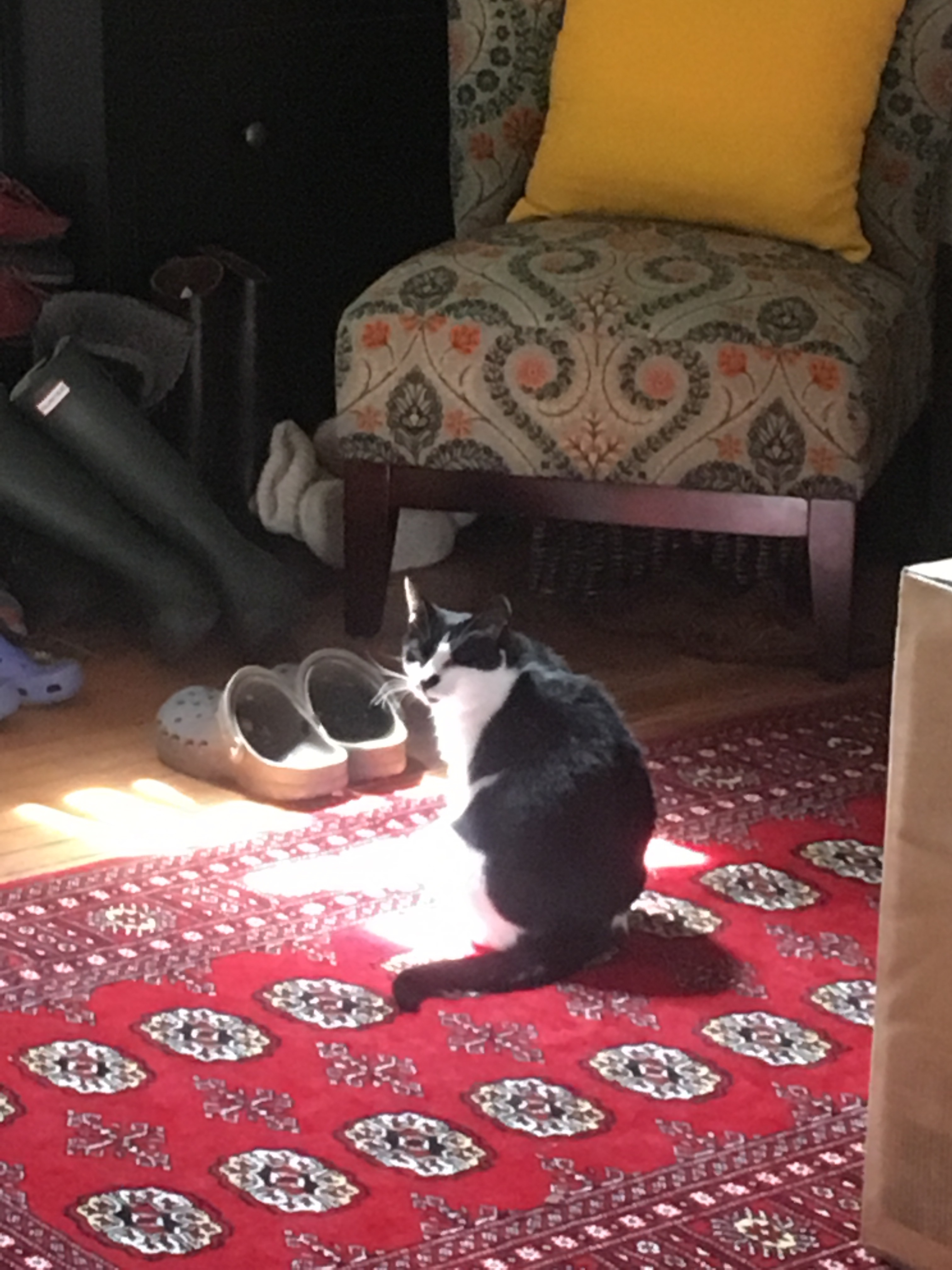 ネコちゃんが逃げた先に段ボールがあり、作戦成功!